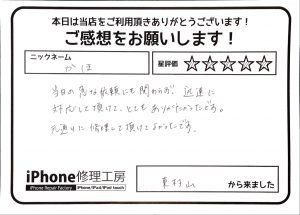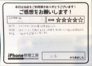 当店の修理対応にご満足頂けて大変嬉しく思います^ ^