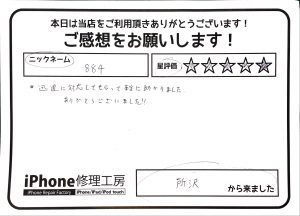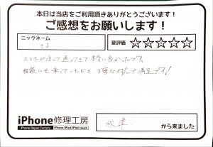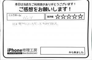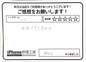 お客様の大切な端末を素早い対応でお直しする事が出来たようで安心致しました。