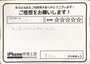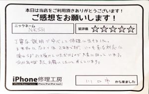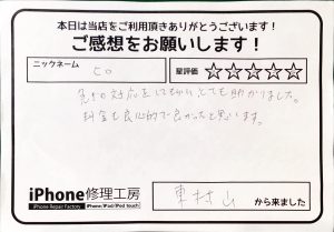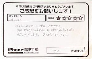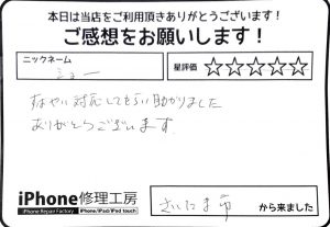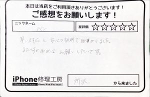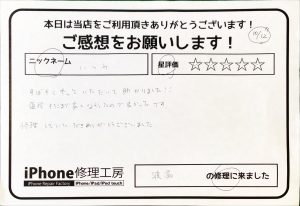 本日はiPhone修理のお客様から頂いた口コミをご紹介します。