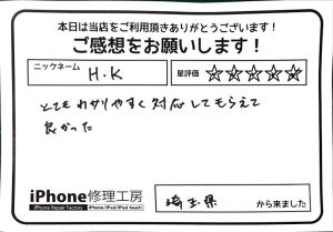 【iPhoneXの画面修理でお越しのH・K様からいただいた評価】