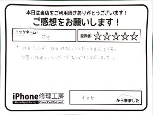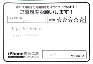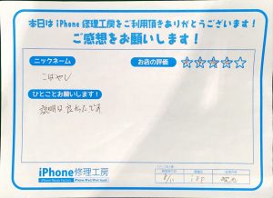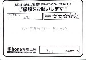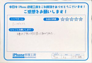 本日はiPhone修理でお越しのお客様から頂いた口コミをご紹介します!