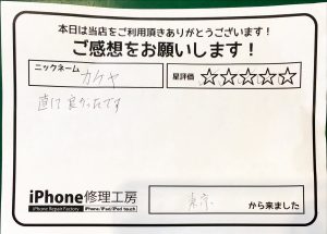 【iPhone8の画面修理でお越しのカケヤ様からいただいた評価】