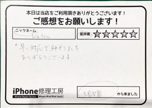 〜iPhone6のバッテリー交換でお越しのかつ様からいただいた評価〜