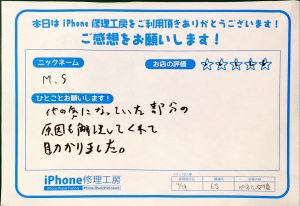 〜iPhone6Sの画面修理でお越しのM.S様からいただいた評価〜