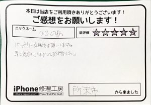 本日は、iPhone 6Sのバッテリー交換でお越しのお客様からいただいたお声を紹介します。