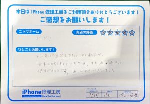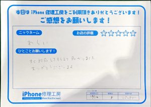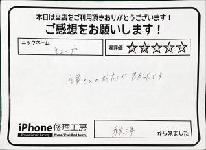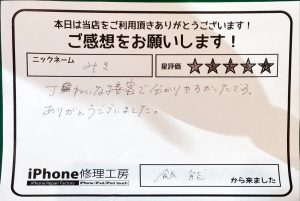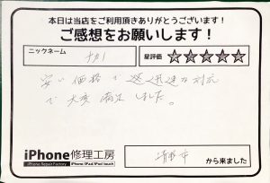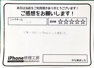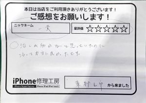 本日はiPhone修理でお越しのお客様から頂いた口コミをご紹介いたします。