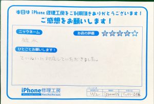 〜iPhone 5Sのバッテリー交換でお越しの緑水様から頂いた評価〜