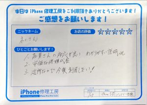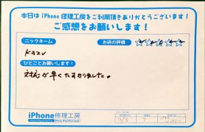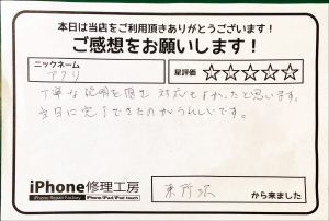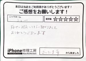 本日はiPhone修理でお越しのお客様から頂いた口コミをご紹介致します。