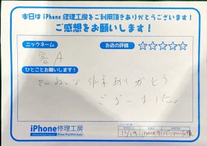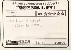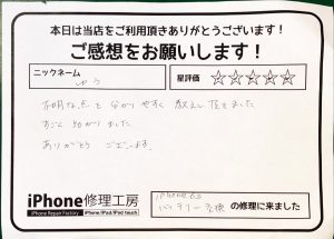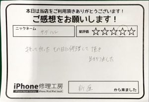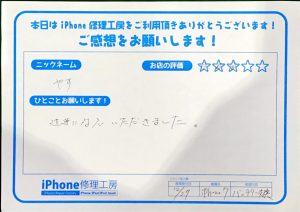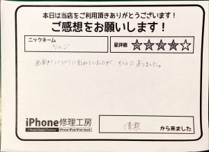 本日はiPhone修理でお越しのお客様から頂いた口コミをご紹介します。