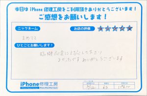 〜iPhone6Sの画面交換でお越しのまめママ様から頂いた評価〜