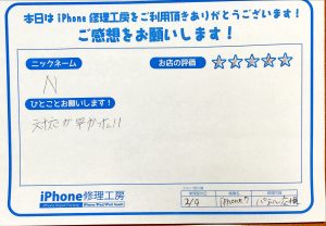本日はiPhone6Sの画面交換でお越しのお客様からのお声をご紹介します^ ^