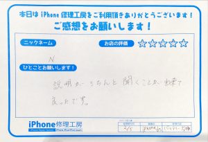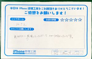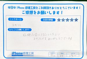本日はiPhone修理でお越しのお客様から頂いた口コミを紹介します。