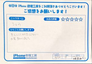 【iPhone7のバッテリー交換でお越しのショウ様からいただいたお声】