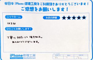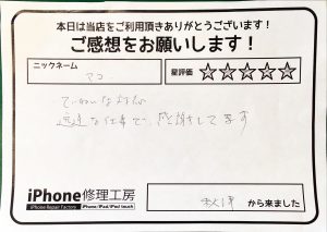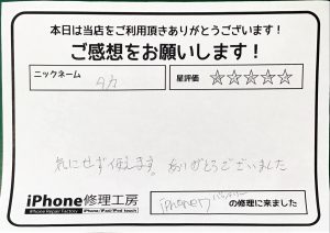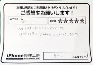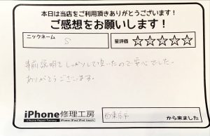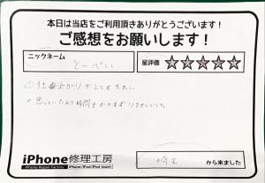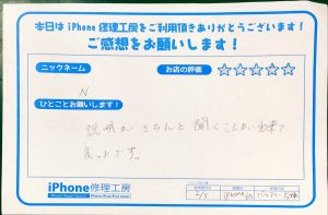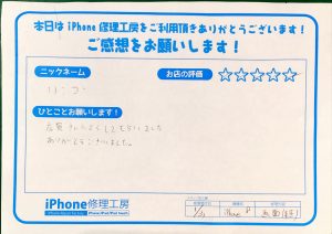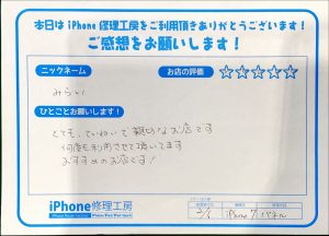 本日はiPhone修理でお越しのお客様から頂いた口コミをご紹介します。