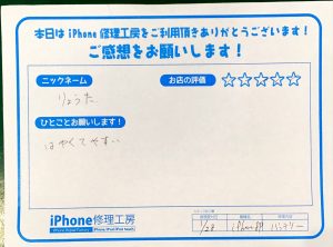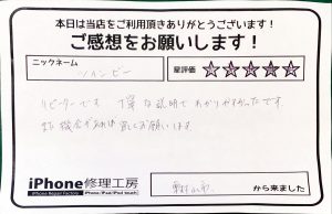 本日はiPhone修理でお越しのお客様から頂いた口コミを紹介します。