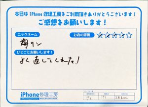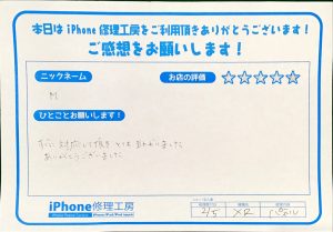 この度はiPhone修理でお越しのお客様から頂いた口コミをご紹介いたします。