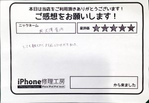 本日はiPhone修理でお越しのお客様から頂いた口コミを紹介致します。