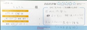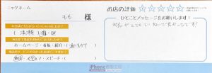本日はiPhone修理でお越しのお客様から頂いた口コミを紹介致します。