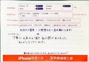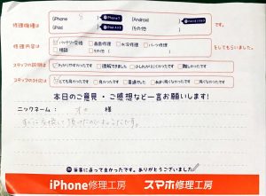 本日はiPhone修理でお越しのお客様からいただいた口コミをご紹介します。