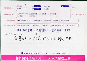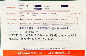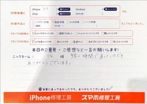 本日はiPhone修理でお越しのお客様から頂いた口コミをご紹介致します。
