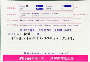 本日はiPhone修理でお越しのお客様から頂いた口コミをご紹介致します。