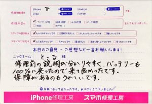 本日はiPhone5のバッテリー交換でお越しのお客様からいただいた口コミを紹介します。