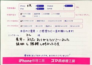 【iPhoneXRのバッテリー交換でお越しのマル様からいただいた口コミ】