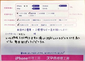 iPhone修理でお越しのお客様からいただいた口コミをご紹介致します。