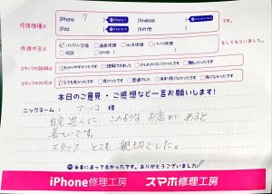 本日はiPhone8のバッテリー交換でお越しのお客様からいただいたお声をご紹介します!!