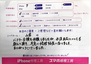 iPhone修理工房秋津店 /iPhone7の画面交換でお越しのお客様の口コミ