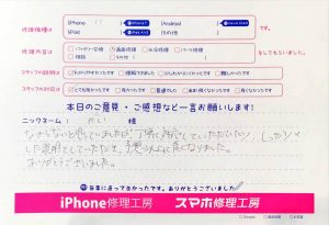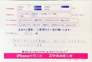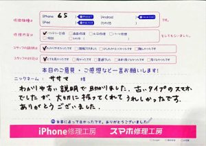 本日はiPhone6Sのバッテリー交換でお越しのお客様からいただいたお声をご紹介します!!