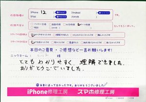 【iPhone12のカメラ交換でお越しのニット様から頂いた口コミ】