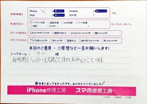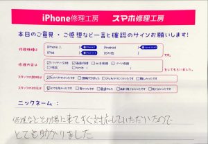 本日はiPhone修理でお越しのお客様から頂いた口コミをご紹介致します。