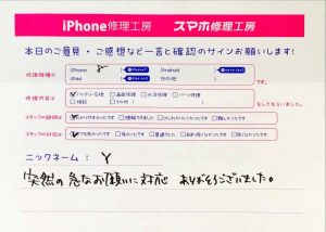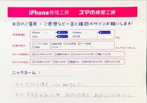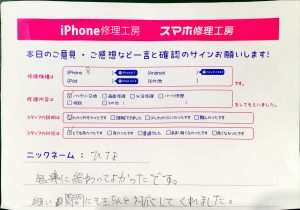 【iPhone7の画面交換でお越しのしのぶ様から頂いた口コミ】