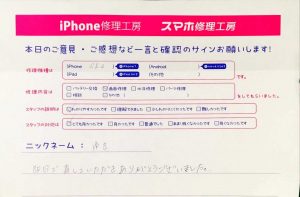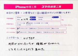 本日はiPhone8のバッテリー交換でお越しのお客様からいただいたお声をご紹介します。