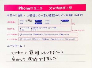 本日はiPhone6SPの画面、バッテリー同時修理のお客様からのお声をご紹介します!!