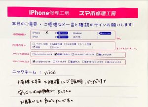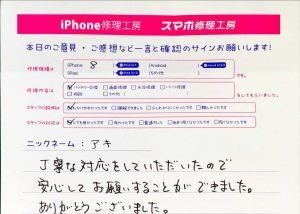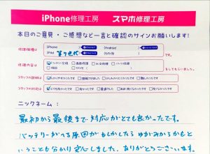 本日はiPad7のバッテリー交換でお越しのお客様からいただいたお声をご紹介します!!