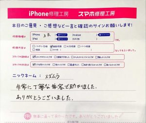iPhone修理工房秋津店/iPhone XRの画面交換のお客様からの口コミ