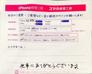 iPhone修理工房秋津店 / iPhoneXのバッテリー交換でお越しのお客様から頂いた口コミ