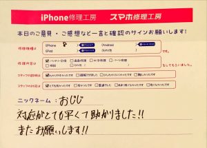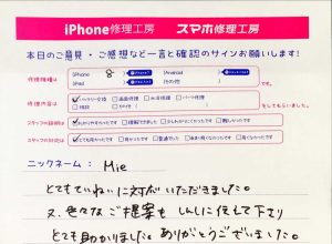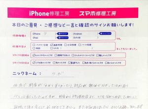 本日はiPhone8のバッテリー交換でお越しのお客様からいただいたお声をご紹介します!!