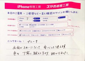 本日はiPhone7の画面交換でお越しのお客様から頂いた口コミをご紹介致します。