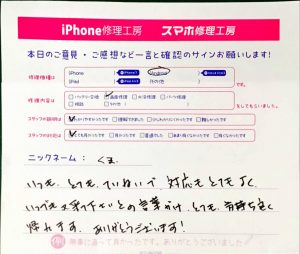 本日はiPhoneXのバッテリー交換でお越しのお客様から頂いた口コミを紹介します。