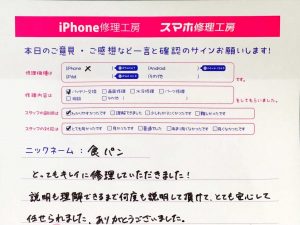 本日はiPhone6sの画面交換でお越しのお客様から頂いた口コミをご紹介致します。