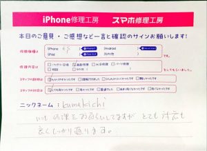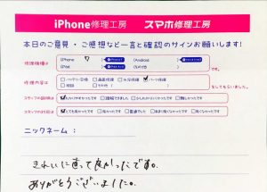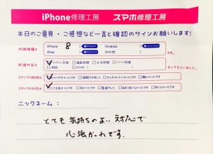 本日はiPhone8のバッテリー交換でお越しのお客様からいただいたお声をご紹介します!!