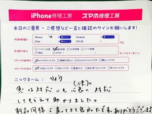本日はiPhone7のホームボタン交換でお越しのお客様からいただいたお声をご紹介します!!
