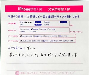 【iPhone12miniの画面交換でお越しのゲーム様から頂いた口コミ】