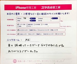 この度はiPhone修理工房秋津店にお越しいただき誠にありがとうございました。