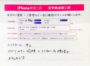 本日はiPhone12 Proのバッテリー、パーツ同時修理でお越しのお客様からいただいたお声をご紹介します!!