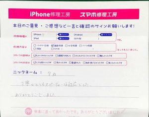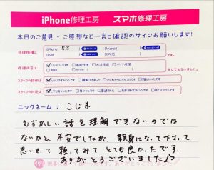 本日はiPhone5Sのバッテリー交換でお越しのお客様からいただいたお声をご紹介します!!