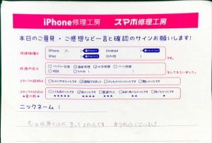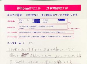 本日はiPhone6の画面交換でお越しのお客様からいただいたお声をご紹介します!!